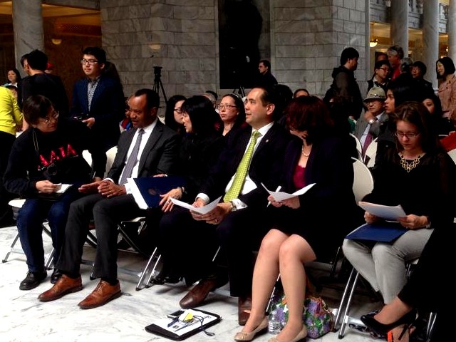 Also, a two-day celebration of the indispensable but often ignored role played by Chinese workers in building the transcontinental railroad completed 145 years ago Saturday — began Friday at Utah’s state Capitol. Friday’s festivities focused on the reading of proclamations honoring the Chinese Transcontinental Railroad Commemoration Project by representatives of Utah Gov. Gary Herbert and Salt Lake County Mayor Ben McAdams.