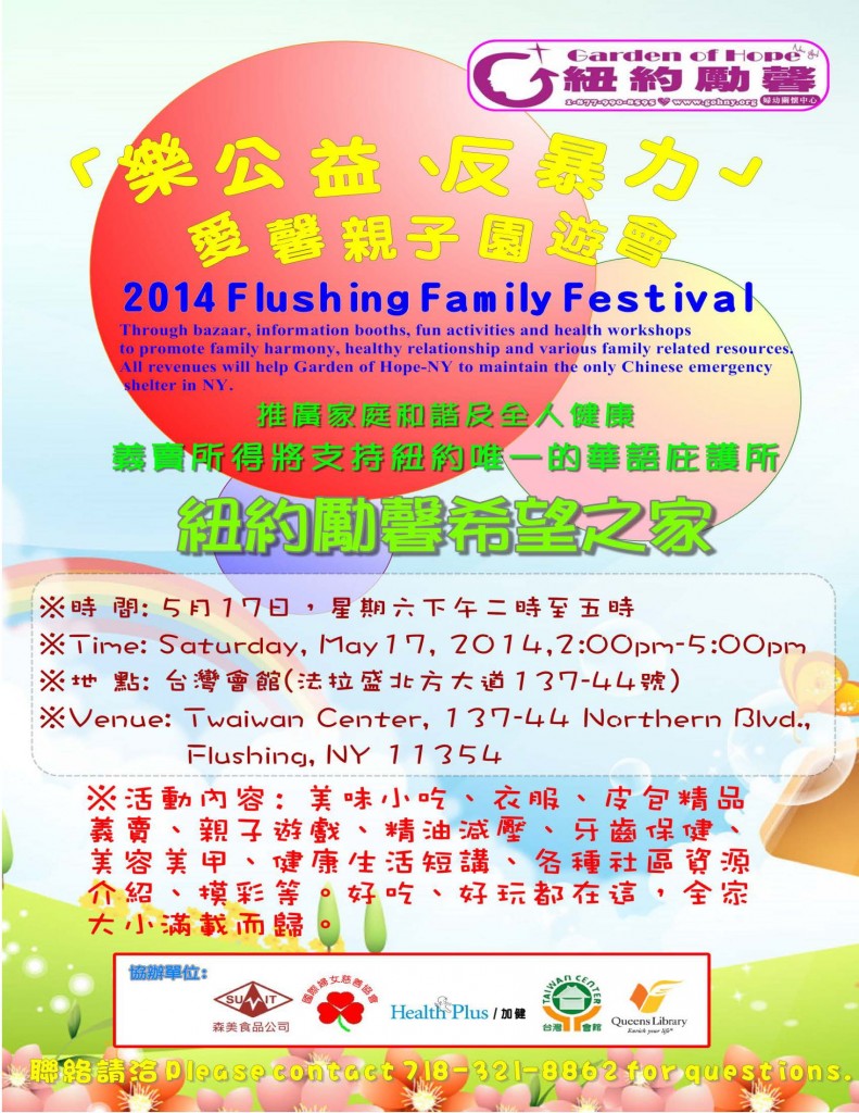 5/17 Saturday, 2pm to 5pm Taiwan Center 137-44, Northern Blvd, Flushing, NY 11354