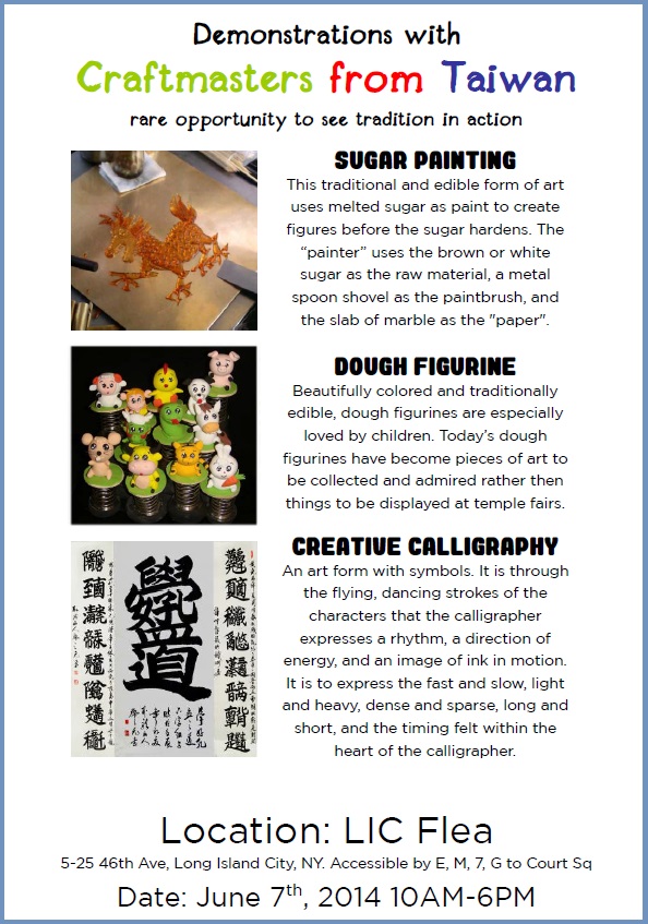 Rare opportunity to see tradition in action: Demonstrations with Craftmasters from Taiwan at LIC Flea!