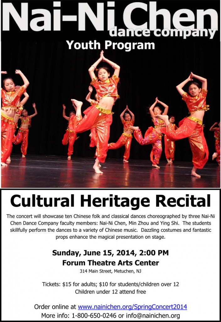 The concert will showcase ten Chinese folk and classical dances choregraphed by three Nai-Ni Chen Dance Company faculty members: Nai-Ni chen, Min Zhou and Ying Shi. The students skillfully perform the dances to a variety of Chinese music. dazzling costumes and fantastic props enhance the magical presentation on stage.