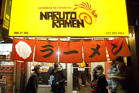 The Upper East Side isn’t exactly Ramenville. But who knows whether the downtown-style ramen bar Naruto will spark a trend? Here you sit in the traditional ramen-bar manner—on a hard stool wedged in tightly next to your neighbors as if you were taking the No. 4 train uptown during rush hour. The best day to visit is on a Monday, also known here as “Ramen Day,” when they knock a couple of bucks off the usual $9-$10 price of a bowl of the soy-sauce-based house ramen, which comes fortified with half a hard-boiled egg, a slab of roast pork, and a slice of the signature pink-and-white processed fish cake known as narutomaki. — Rob Patronite and Robin Raisfeld
