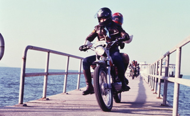Kuei Chih-hung loves his exploitation tropes, and with this movie he gives the world his very own, very bloody take on the biker picture (known more evocatively as Madboys in Hong Kong). Starting off as a teen beach movie, two couples head out to a remote seaside villa to enjoy a weekend of sun, surf, and barbecue. Also enjoying the sun and sand is a bike gang made up of spoiled rich kids who like to slum it as a rowdy bunch of road rebels on their spiffy Yamahas. A series of class-warfare pranks between the two groups rapidly escalates out of control and suddenly we’re watching Kuei’s version of Straw Dogs as the gang goes insane and decides that their barbecue menu will include the camping kids. Motorcycles jump through houses! Stuntmen on fire get thrown off rooftops! Boiling oil scorches faces! Biker gals strip naked! Spearguns will be used! By the end of this movie, everyone under the age of 21 has been run over, pierced, chopped, slashed, burned to death, or just bludgeoned into submission with a big old hog. Part of Sir Run Run Shaw Tribute. Presented with the support of Hong Kong Economic and Trade Office New York and Celestial Pictures.