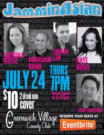 It’s JamminAsian, the longest and only running asian-american variety show in NY. A fun evening of standup, performance art and everything in between. And who knows who will drop by for a performance. What an awesome lineup: Katrina Reese, Muhshin Khan, Jamin Lin and the fabulous, Kate Rigg! Hosted by KAD Tom Hudson!