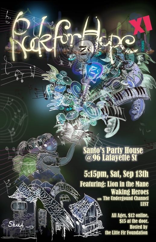 We would like to invite you to Rock For Hope Concert XI , a charity event hosted by the Little Fir Foundation . The concert will be launched at Santos Party House on Saturday, Sep 13th 2014, door at 5:15pm. All proceeds and ticket sales will be donated to fund the educational programs for financially underprivileged children in China. Please feel free to invite your friends to join this meaningful social event and have a great time enjoying the local indie music bands!