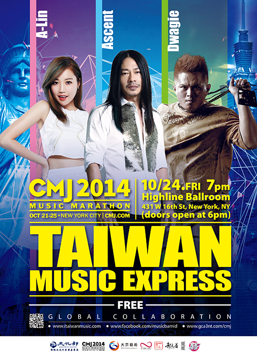 Taiwan Music Express, a week-long cross-cultural showcase of Taiwanese music, hosted by Taiwan’s Ministry of Culture (MOC), Bureau of Audiovisual and Music Industry Development (BAMID). Taiwan Music Express will feature top Taiwanese artists representing three music genres: award-winning pop sensation and “born diva” A-Lin; solo rock artist, songwriter, and six-time Golden Melody Award-winner Luantan Ascent; and internationally acclaimed rap artist and activist Dwagie. These artists will perform at Taiwan Music Night 2014 at Highline Ballroom on October 24, 2014.