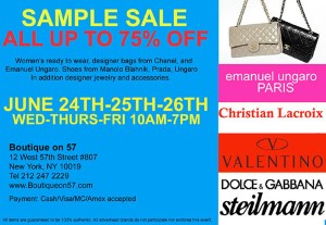 Women’s ready to wear, designer bags from Chanel, and Emanuel Ungaro. Shoes from Manolo Blahnik, Prada, Ungaro in addiont designer jewelry and accessories.