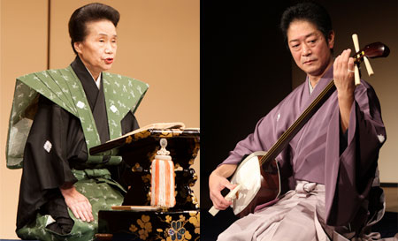 Artists include: Fujii Hirokazu (jiuta chanter/shamisen), Takemoto Komanosuke (gidayu chanter, Living National Treasure), Tsuruzawa Yumi aka Yumiko Tanaka (gidayu shamisen), Tsuruzawa Tsugahana (gidayu shamisen), Imafuji Chotatsuro (nagauta shamisen), Kineya Katsujuro (nagauta shamisen), Kineya Mitsuya (nagauta chanter) and Hanayagi Genkuro (nihon buyo traditional dancer).