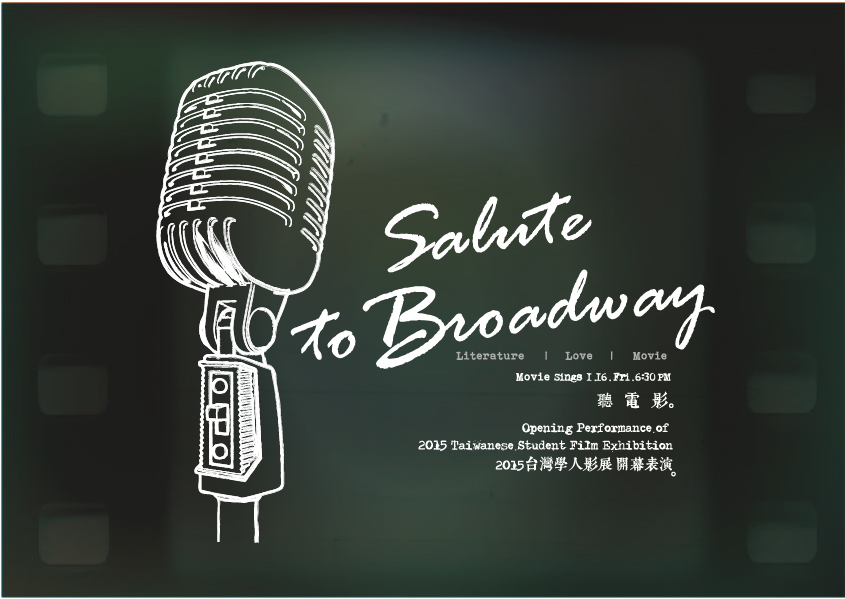 Besides, #MovieSings will also be the opening show of 2015 Taiwanese Student Film Exhibition. It’s the end of #SaluteToBway, but the beginning of talented Taiwanese young artists’ art works. Stay and check it out after out show!