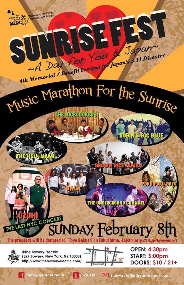 SUNRISE FEST is the Annual All-Day Memorial Festival for the Victims of the Japan’s Earthquake/Tsunami attacked on March 11th 2011.