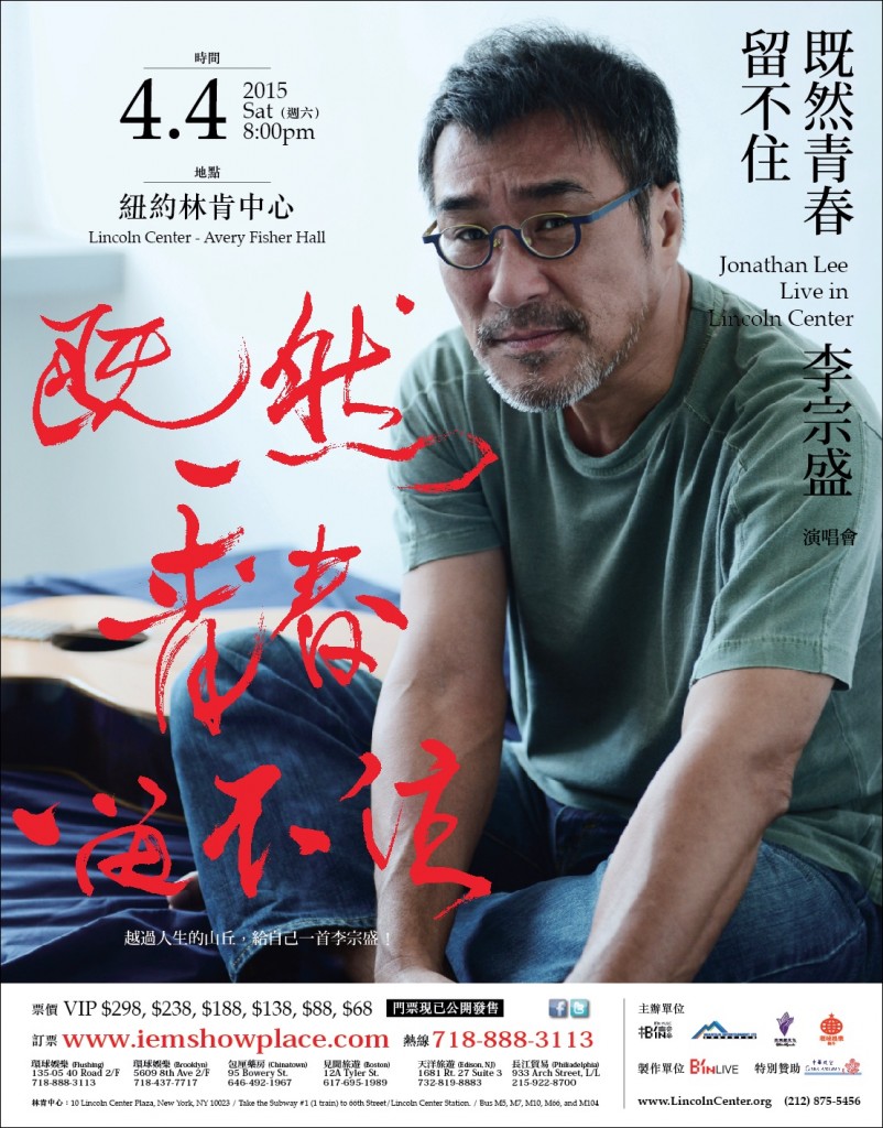 Jonathan Lee, the godfather of the Taiwanese Mandapop, he is making a live concert at the Lincoln Center – Avery Fisher Hall this April 4th, at 8pm. Lee is such good performer that take command of a stage. In an intimate setting, he is set to serenade audience with over 30 popular classic hits and the upcoming gig in New York will be a great musical feast you should not miss! Ticket Sale will commence on February 2nd from 11am.