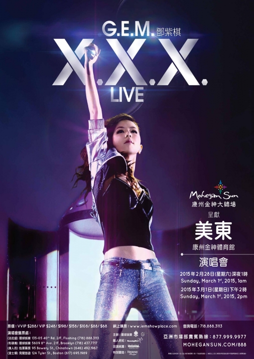 Famous Hong kong award wining singer, Gloria Tang Tsz-Kei, is going to perform at Mohegan Sun Casino on March 1st.
