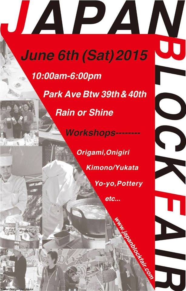 Saturday, June 06 10AM to 6PM Park Ave Btw 39th & 40th, New York, NY Enjoy Japanese Food and Culture at Japan Block Fair! More info: https://www.facebook.com/