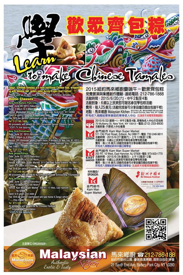 Fee: $25 per person (participant will take home 4 Zongzi which they made)
