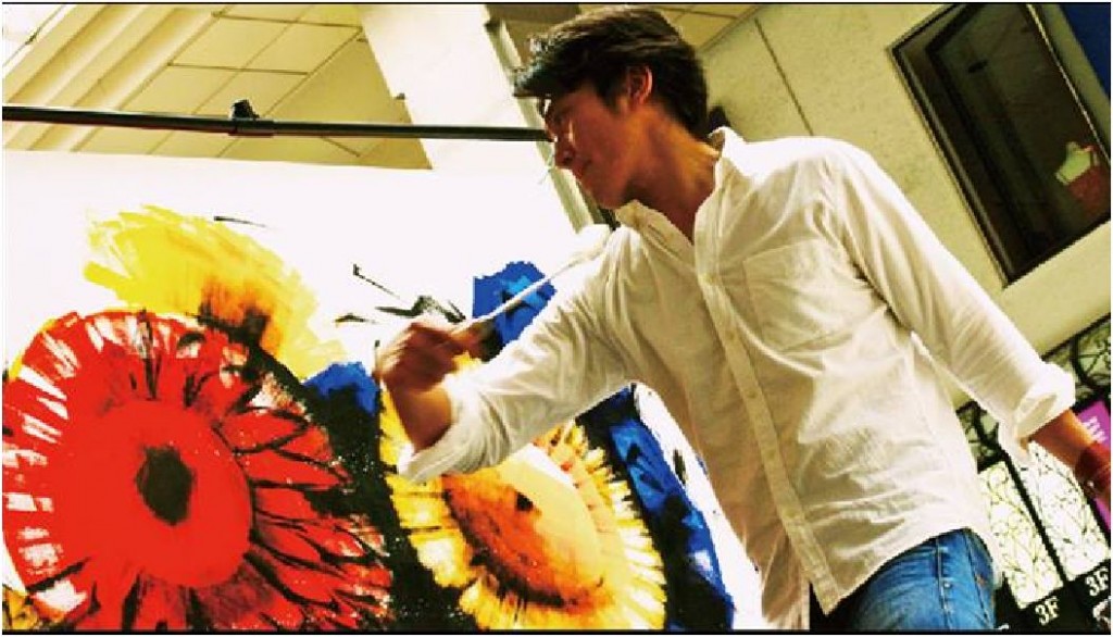 In his early 20’s Takeshi traveled to the west coast of America, where he found inspiration in mural art. From there he became self-taught and developed his own style of art. His pursuit for art that could be “expressed in a short period of time” lead him to master brush and spray styles and many kinds of tools finally using a Paint Roller he created his original style. His distinct style of painting which can be used for performances would give the audience an element of surprise and unpredictability from his unique touch and strokes with a paint roller. This would then leave a strong impact in the minds and hears of the audience.