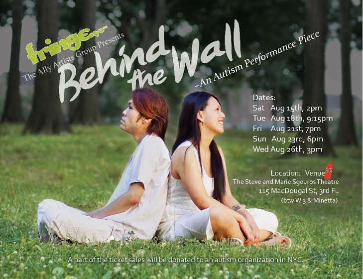 The Ally Artists Group is proud to present “Behind the Wall- An Autism Performance Piece” as part of the 19th annual New York International Fringe Festival . Created and Performed by Joyce Lao and Andy Miyamotto, with Stage Manager and Co-Director – Zilong Zee, Music by Joyce Lao, Andy Miyamotto and Viola Wang and Authorized Company Representative, Sabrina Morabito.