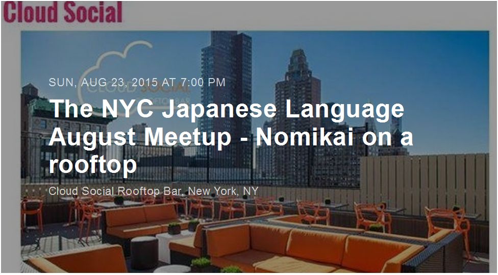 Come join us on August 23rd for a Japanese-English Nomikai. I have reserved a communal table in the bar for us to sit or stand around. So we can have more comfortable social experience meeting native Japanese people or non-Japanese people.