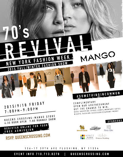 showcase MANGO’s Fall/Winter 2015 collection. As a part of New York Fashion Week, this event will start with a runway show featuring MANGO’s newest “70’s Revival” collection inspired by the styles of 70’s music icons and will be followed by an in-store party with complimentary open bar, refreshment and the #SOMETHINGINCOMMON photo booth. The runway show will be attended by renowned models, famous fashion bloggers and many more fashion insiders in NYC.