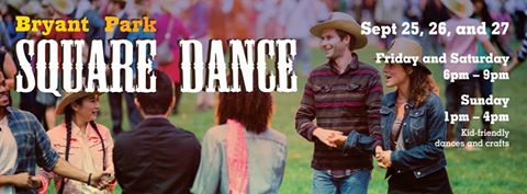 Our beloved annual Square Dance returns to Bryant Park for the weekend of September 25 – 27. Friday and Saturday, 6-9pm. Sunday, 1-4pm.