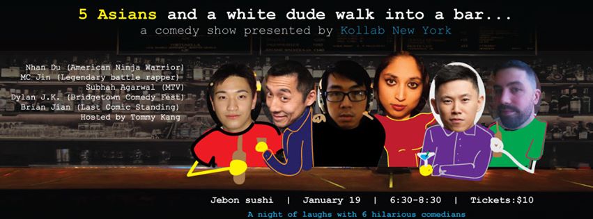 Come join us and welcome 6 hilarious comics at Jebon Sushi Tuesday, January 19th for a night of laughs. Headlining will be Legendary Hip Hop Artist MC Jin and the night’s event will be hosted by Tommy Kang.