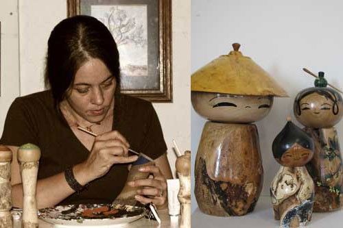 Husband and wife team Lisa and Jacob Hodsdon combine their artistic talents as they craft modern interpretations of the traditional Japanese Kokeshi dolls. Japanese-American, Lisa Holt- Hodsdon specializes in painting and design, her husband Jacob, is a wood-turner. Jacob draws inspiration for the dolls from the natural beauty of wood with Lisa adding color and design to create their own interpretation of the traditional Kokeshi dolls, believed to bring prosperity, joy and a sense of safety to any space they occupy. Each doll is a unique, one-of-a-kind, signed piece of art.