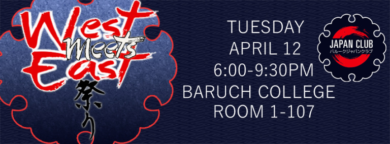 The Baruch Japan Club will hold its fourth West Meets East Matsuri, a festival celebrating the fusion of the different cultures of Japan and New York. International and local performers, Japanese professional artists, and talent students from the New York region will converge in the Multi-purpose room (1-107) to share traditional and contemporary Japanese culture, from dance to drumming to an authentic samurai sword battle.