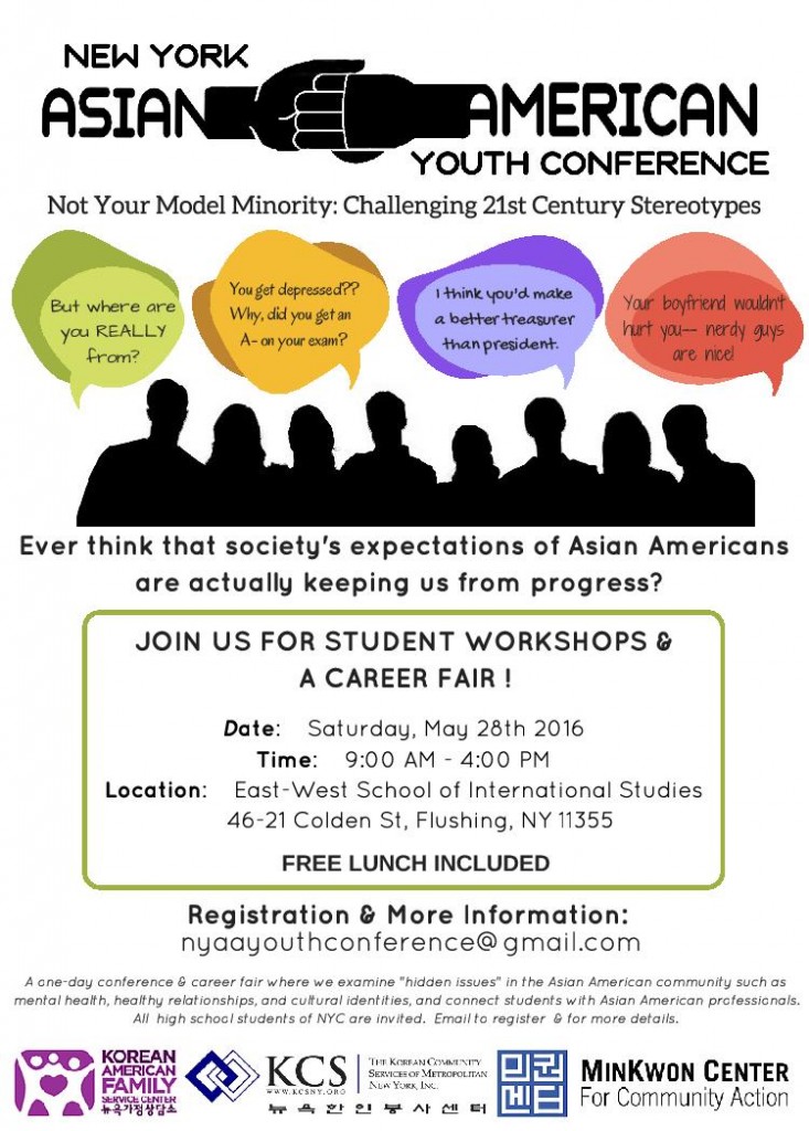 The New York Asian American Youth Conference is an Asian American youth-led and youth serving conference on contemporary Asian American issues. It is a collaboration between three community-based organizations: Korean American Family Service Center (KAFSC), the Minkwon Center and Korean Community Service (KCS).