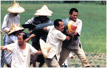 In 1940s Taiwan, a small Japanese military marching band ceremoniously arrives at an impoverished farming village to return the remains of Taiwanese soldiers who died fighting in a war far from home. The Japanese occupation (1895–1945) is nearing its end, but the villagers are less concerned with colonial politics than with feeding their families. One day, an American bomb falls onto a field, where it lies unexploded. Oblivious to the potential danger, two clownish brothers excitedly carry it into town hoping to be rewarded by the Japanese general. The journey is filled with slapstick humor as the two escape multiple near-death scenarios. A classic of the Taiwan New Cinema, Strawman is a black comedy that brings into sharp focus the absurdity of life under occupation. Print courtesy of Taiwan Film Institute.