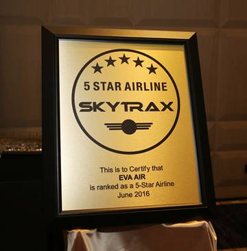 SKYTRAX, an international air transport standards and quality rating organization, awarded EVA Air its prestigious 5-Star Airline ranking during a ceremony in Taipei, Taiwan on June 15, 2016. The 5-Star ranking is SKYTRAX’s highest global airline quality rating and the result of direct and professional analysis of as many as 800 different areas of EVA’s product and service delivery.
