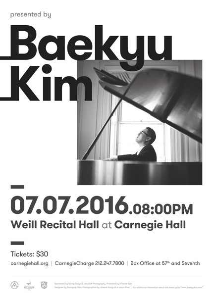 Pianist Baekyu Kim has won many awards and performed in chamber recitals and festivals throughout the United States, Europe, and Asia. He made his Carnegie Hall debut in 2009.
