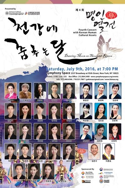 Professor Hyang-Soon Chae from Chung-Ang University’s College of Art and Dance will showcase the Center for Dance Company’s ChukYeonMu, Floral Banquet, Hwahyeonmu, Dancing Moon on Thousand Rivers, A Sword Dance, Taffy Stick Dance, Sadanggaksi, P’unggo. There will be additional performances from Young-Ok Hong, Soon-Hee Kim, Kapson Um, Sun-Young Park, In-Soon Kim, Eun-Hee Ahn, Young-Joo Jang, Yeon-Hee Kim, Ae-Sook Park who revitalized an Hourglass-Drum Dance and Jo Bi Dong Lak. Furthermore, the Korean zither and Pansori artist, Ra-mi Seo and Eun-Soo Kim will perform Gayageum Sanjo and a traditional Korean folk song, and the New Jersey Choomnoori Dance Company will perform Kyunggo Dance. Artistic Director Hyang-soon Chae, Traditional Art Performer Ok-Seop Jin, in collaboration under the direction of New York Korean Traditional Marching Band’s Chun-seung Lee promises an unforgettable performance of art and harmony.