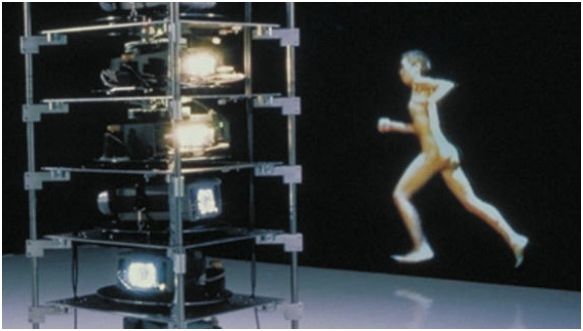 Lovers is an immersive, room-sized multimedia installation by Japanese artist Teiji Furuhashi (1960–1995). Life-sized images of the artist and other fellow members of the Kyoto-based artist collective Dumb Type are projected onto the walls of a darkened room from a tower of computer-controlled video and slide projectors at its center. The figures move like specters around the perimeter of the space, in a looped choreographic sequence made variable by a visitor-activated motion sensor, which intervenes to restart one of the projections when triggered. Confined to their autonomous projections, these eponymous “lovers” overlap at moments within the sequence, whether running past each other or pausing in a gesture of embrace, yet their bodies never make contact. Made just one year before Furuhashi’s death from AIDS-related illness, Lovers speaks to what the artist has described as “the theme of contemporary love in an ultra-romantic way.” Presented for the first time since its inaugural exhibition at MoMA in 1995, the installation showcases the results of an extensive conservation effort recently completed by the Museum’s media conservators.