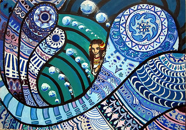 AWJED was born in Japan in 1980 and was raised in a household full of music. Apart from studying piano, she liked expressing her own world of images, as she saw in picture books of Japanese mythology and Arabian Nights among others. In school, she had a reputation because of her drawings of caricatures and comics and she was tasked with drawing a portrait of the whole class for their graduation album. In 2002, she gradu- ated from Toho College of Music with a Bachelor of Music in Piano. After that, she wrote music and worked on architectural design technology for civil infrastructure maintenance pertaining to disaster control. All along, she felt more and more eager to use her illustrations to express a world of unknown that could enliven people. From that time, she has concentrated on making 100 pieces of the world for her project “AWart100.” In 2011 and 2012, she participated in international art fairs such as Design Festa in Tokyo. In 2013 and 2014, she displayed work in “100 Artist Exhibition” at Ouchi Gallery in New York and energetically continued making art.