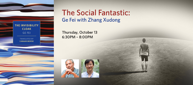 Join us on Thursday, October 13 for an exclusive conversation between Ge Fei, one of China’s leading voices in contemporary fiction, and Zhang Xudong, Director of NYU China House. They will discuss Ge Fei’s body of work and the publication of The Invisibility Cloak by NYRB Classics.