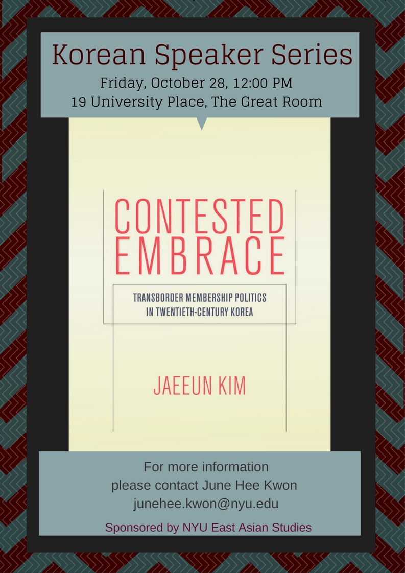 Scholars have long examined the relationship between nation-states and their “internal others,” such as immigrants and ethnoracial minorities. Contested Embrace shifts the analytic focus to explore how a state relates to people it views as “external members” such as emigrants and diasporas. Specifically, Jaeeun Kim analyzes disputes over the belonging of Koreans in Japan and China, focusing on their contested relationship with the colonial and postcolonial states in the Korean peninsula.