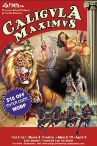CALIGULA MAXIMUS is an off broadway show/ sexy circus experience from the owner of the Box that just opened and I have discount tickets. Co-written by Alfred Preisser (Co-Founder, Classical Theatre of Harlem) and Randy Weiner (owner of the notorious night spot, The Box) and directed by Preisser, CALIGULA MAXIMUS is set on the last night of the infamous dictator’s life. With a cast that includes Ryan Knowles as Caligula, adult film star and Penthouse Pet Justine Joli, Lady Circus troupe aerialist Anya Sapozhnikova, award-winning competitive bodybuilders Myra Adams and Roxanne Edwards, Coney Island Sideshow tattooed muscleman Tim Dax, and an outrageous collection of over two-dozen circus performers, wrestlers, showgirls and freaks, CALIGULA MAXIMUS audiences should expect “an entertainment” that will test their limits of human intellect and appetite.