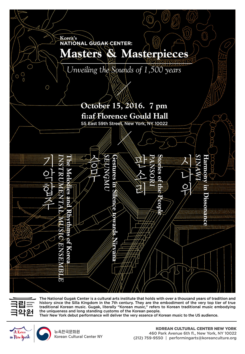 This New York debut performance of the National Gugak Center is especially important in that they are the embodiment of the very top tier of true traditional Korean music. With their premiere in NY, they are bringing the very essence of Korean music to the US audience.