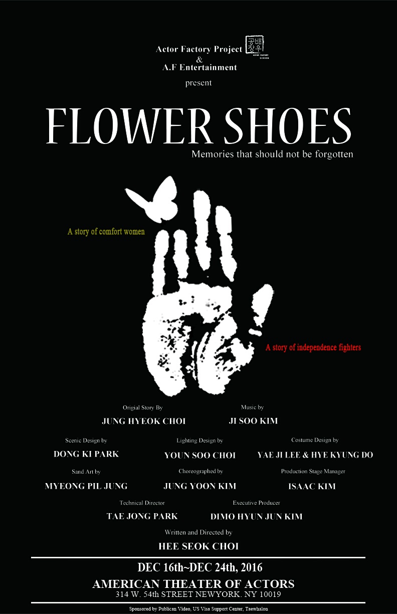 더욱 자세한 정보는 American theatre of actors 극장 홈페이지 www.americantheatreofactors.com 또는 www.flowershoes2016.com 에서 찾아볼 수 있으며 관련 문의는 극단 배우공장 (646) 363-3151 로 하면 된다.