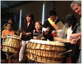 Professional musicians and their student performers from the Korean Traditional Marching Band come together to present their Korean folk drumming repertoire followed by an interactive workshop that helps participants understand Korean rhythms and instruments, and explore traditional movements.