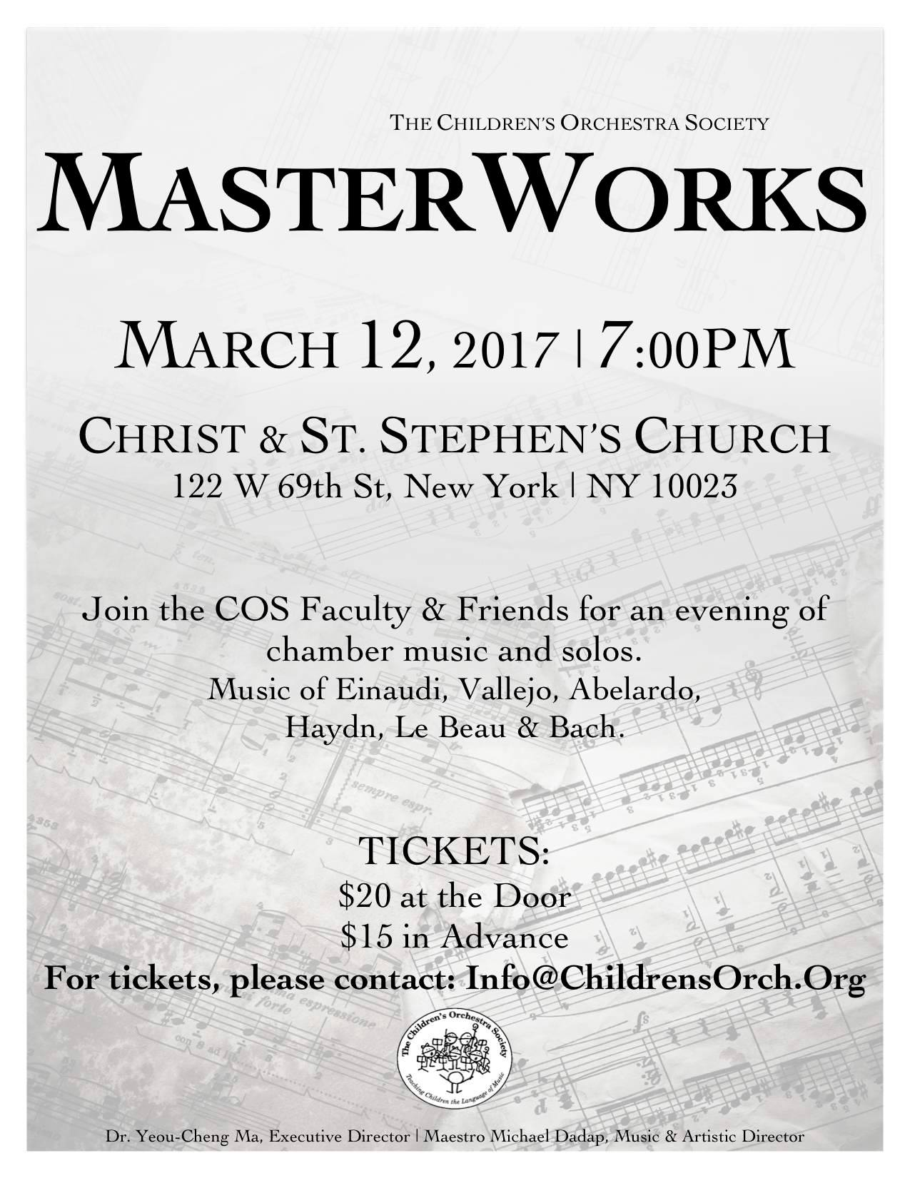 Performers: Michael Dadap, Guitar, Josh Koppeis, Trombone, Yeou-Cheng Ma, Violin, Olivia Martinez, Viola, Ron Pamposa, Trumpet, Gloria Shih, Piano, Kevin Shue, Violin, Victoria Verga, Cello and COS friends Mike Engstrom, Bass Trombone, Eli Maurer, Trumpet.