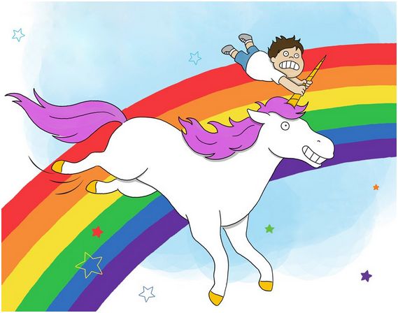 When a little boy throws a coin in a well asking for a pet unicorn, he has no idea what kind of trouble he’s in for. Unbeknownst to him, unicorns make the absolutely worst pets: they shed, they poke holes in your ceiling, they make a big mess. With a knowing wink from Ame Dyckman, creator of Wolfie the Bunny, and cheerful illustrations from Rory the Dinosaur creator and Tumblr star Liz Climo, this catalog of all of the ways a pet unicorn can ruin your life is sure to have readers in stitches.