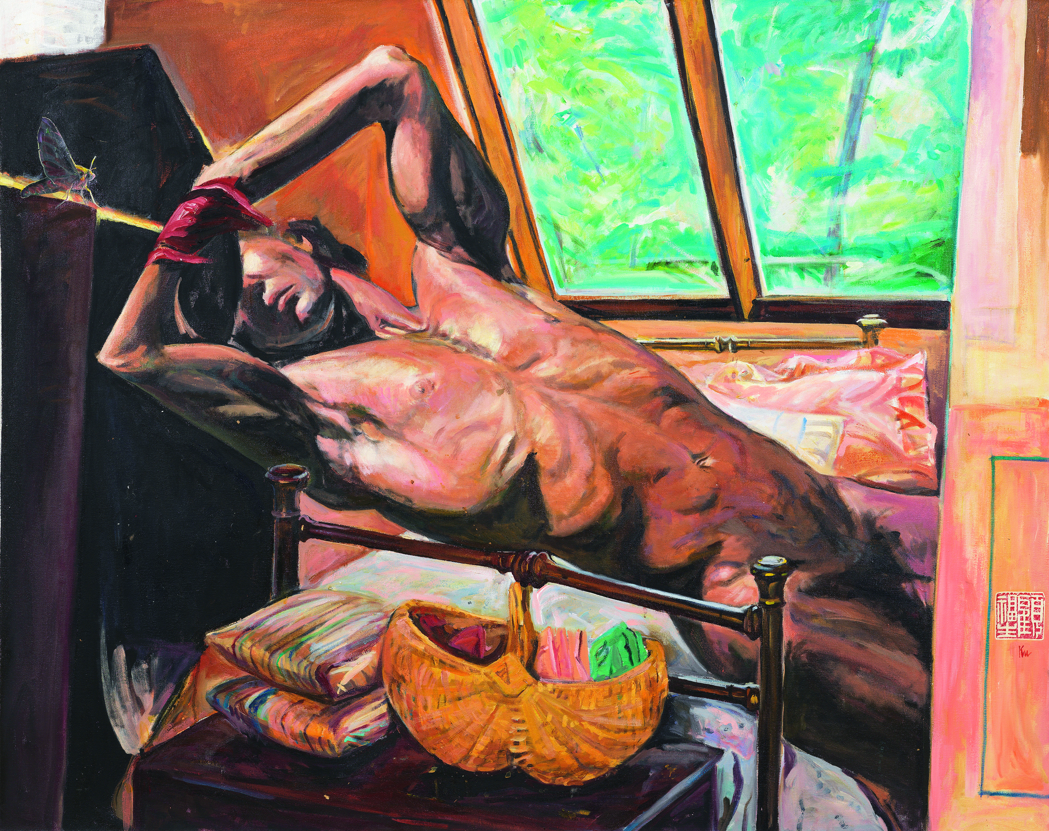 Through his art he expresses and records all the love, desire and yearning that cannot be put into words. Human beings are the main subject of his art. People’s meeting and parting, togetherness and separation, the complexity and diversity of human nature, and the illusions and realities of human life all figure among the main themes being expressed. While canvas and paper being the backdrop for most of his work, his use of other media and materials such as clothing, fabrics, gold and silver leaf, rope and wood lend variety and interest to his art. Much of his work falls into the category known as collage. There is nothing simplistic about his human figures which are rarely realistic but instead portray lonely bodies devoid of individual characteristics, some even lacking faces or heads. His world has always been breaking through the bounds of rationality to make his fantasies and dreams fly wherever he pleases.