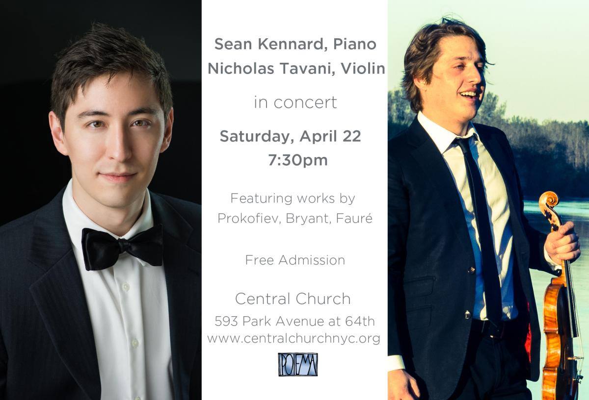 The Poiema Artists series is excited to present Sean Kennard (Piano) and Nicholas Tavani (Violin) in concert on Saturday, April 22nd at 7:30pm. Come out for a beautiful concert that will feature musice of Prokofiev, Bryant, and Fauré.