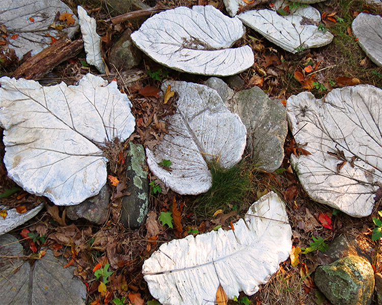An expansive installation by artist Elizabeth White in Flushing Town Hall’s garden. The artist uses life-cast leaves to represent individuals away from their roots. They are arranged singularly or in clusters, underfoot or under cover, up against or over a wall. In view of current economic disasters, political conditions, military actions, and climate or earth changes the artist sees immigration as the new normal.