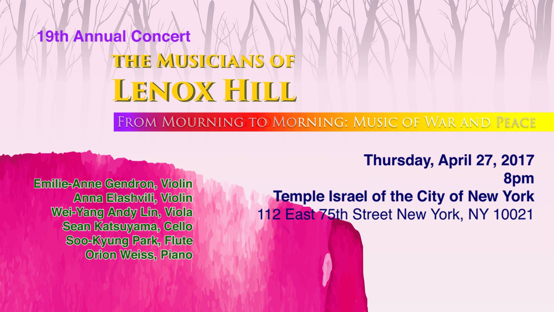 In endowing this annual concert in memory of Dr. Hyman and Jerrold Levy, the late Mrs. Muriel Levy sought to promote the outstanding talents of the Musicians of Lenox Hill.
