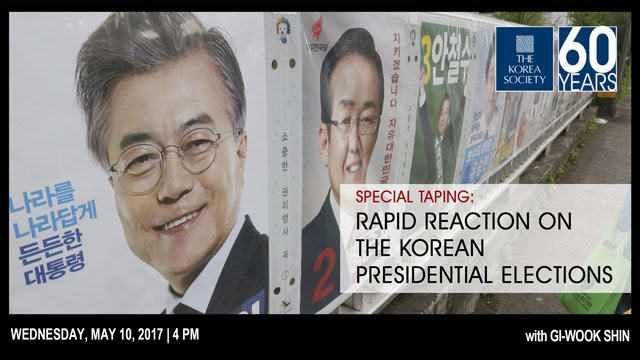 Join Korea Society senior director and Columbia University adjunct professor Stephen Noerper in conversation with Tong Yang, Korea Foundation and Korea Stanford Alumni Chair of Korean Studies Gi-Wook Shin. Professor Shin appears remotely from Stanford University. This rapid reaction program examines the winner and losers in the election, priorities and next steps for the new Korean President, and implications for United States policy given tensions around the Korean Peninsula.