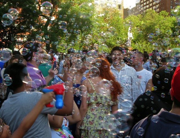 This event has attracted thousands over the years at favorite public spaces in NYC. Join us as we return to Washington Square Park on Sunday June 11th from 1 to 3p. Meet around the fountain in the middle of the park. Look for the bubbles.