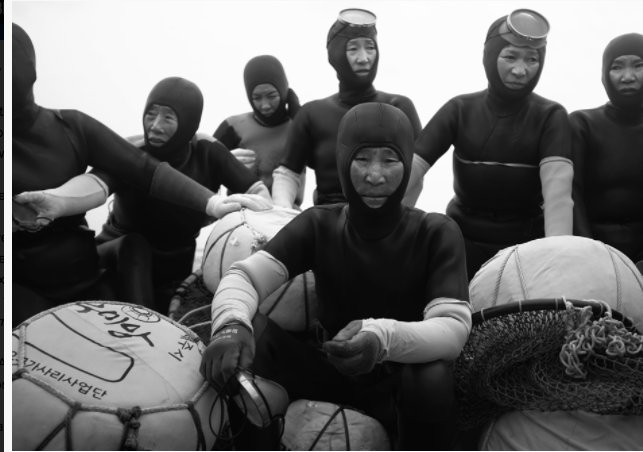 Photographer’s Afterword: “I was amazed every morning by these strong willed women, it’s clearly hard physical work and yet the women seem happy and are constantly joking and laughing with each other… I stayed in Jeju for about a month and continued to be inspired by haenyeo every day. I wanted to give a very special and humble thank you to all haenyeo who made me feel at home. I came to admire their resilience, free spirit, sense of humor, and warmth. These women divers showed me a whole new world. Bobbing around out there in the frigid Pacific on their little foam floats and then kicking down without oxygen tanks to pick up a few abalones of the ocean floor was simply something to witness. I was so honored to be in their presence.”