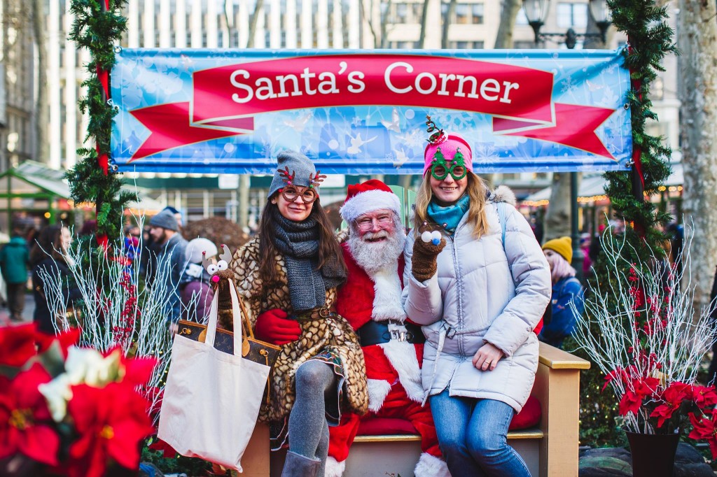 Santa stops by Bank of America Winter Village at Bryant Park for free photo opportunities. There are two ways to get a photo with Santa: bring your own camera or cell phone, and you can snap your own pic; or elves will take a photo that can be downloaded from Santa’s Flickr page.
