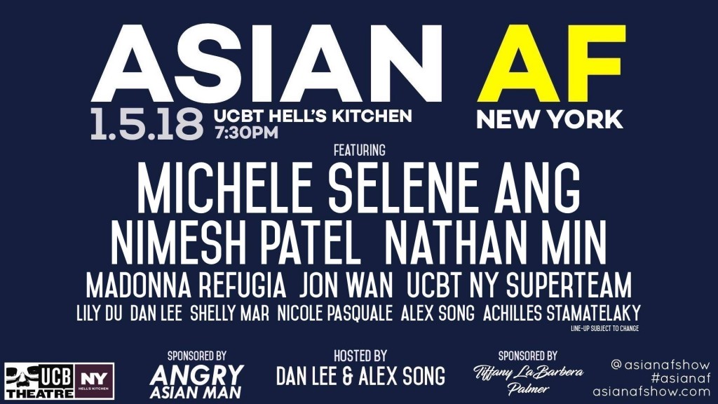 Asian AF, the hit Asian American variety show, is coming back on Fri. January 5th, 2018! And we’re moving to the brand new UCB Theatre in Hell’s Kitchen!!! Tickets are available NOW: https://hellskitchen.ucbtheatre.com/performance/58831