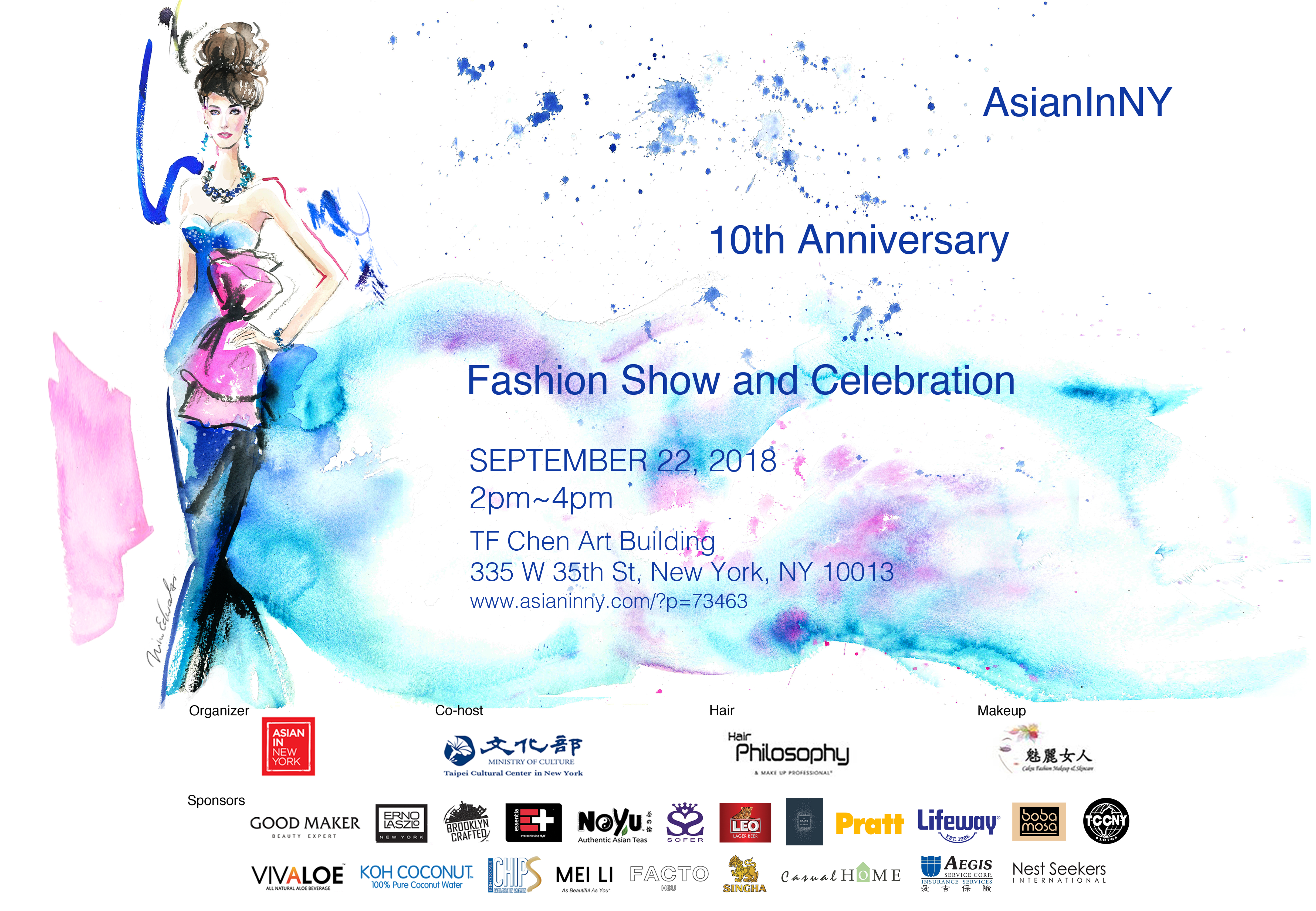 AsianInNY (亞洲人在紐約) 是紐約首屈一指的跨多元文化和娛樂的資訊分享平臺。AsianInNY將於2018年9月22日下午2:00-4:00pm 在即將準備隆重開幕的「陳錦芳文化館」( 地址: 335 West 35th Street, NY) 舉辦十週年時裝秀。演出陣容強大, 結合時尚與文化藝術的精緻饗宴,將為各族裔觀眾展現亞裔風采!